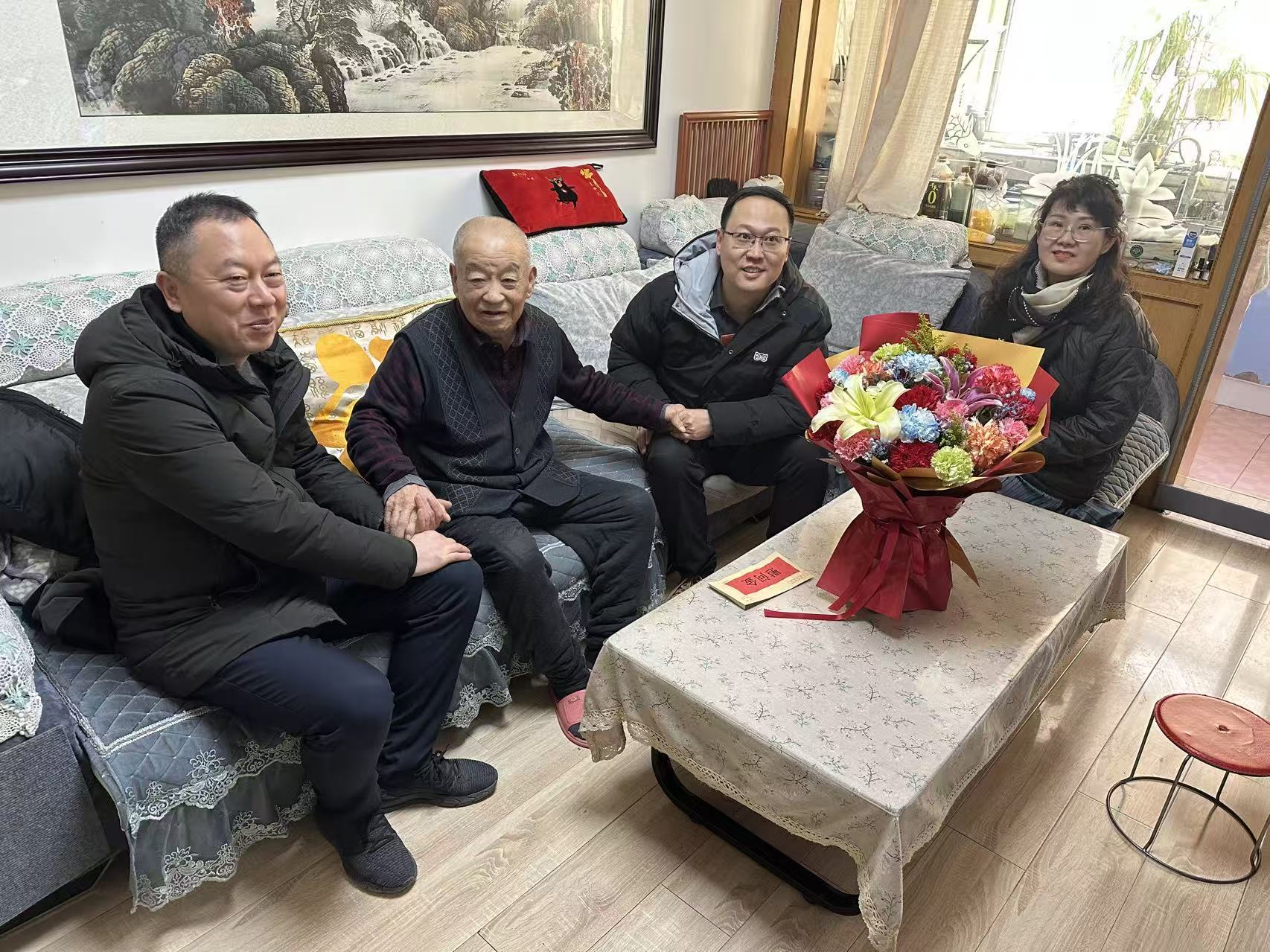 新春佳節(jié)將至,2月6日,西固區(qū)非公有制經(jīng)濟(jì)組織黨委委員丁輝同志與公司黨委書記一行,專程走訪慰問公司97歲高齡的建國前黨員張升元,為老人送去黨和政府的關(guān)懷溫暖與節(jié)日美好祝福。